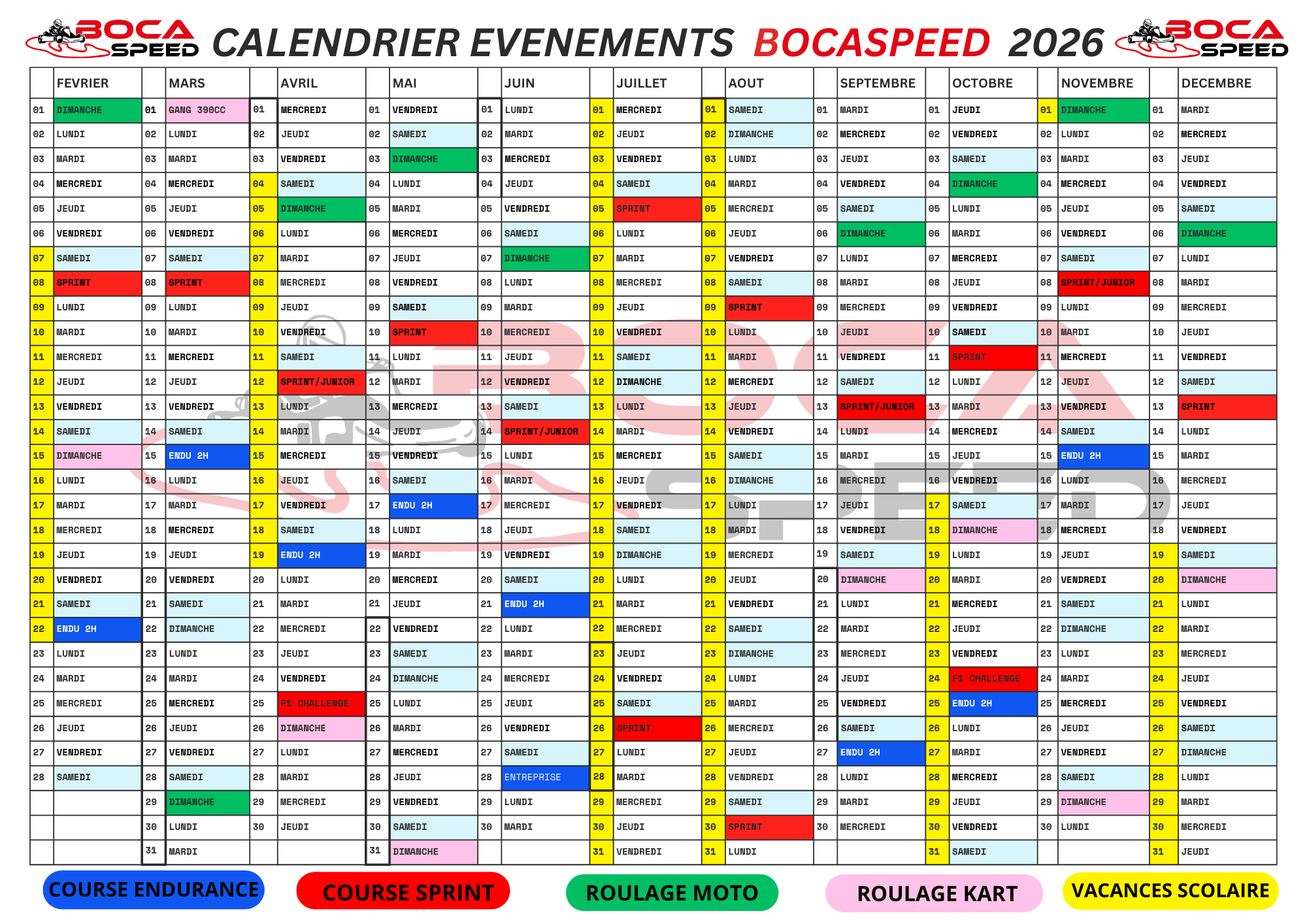 DATES ROULAGES KART ET MOTO :